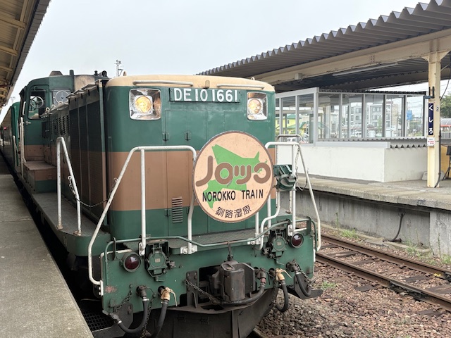 釧路駅まで歩いて、11時6分発のノロッコ号に乗ります。可愛い列車です。