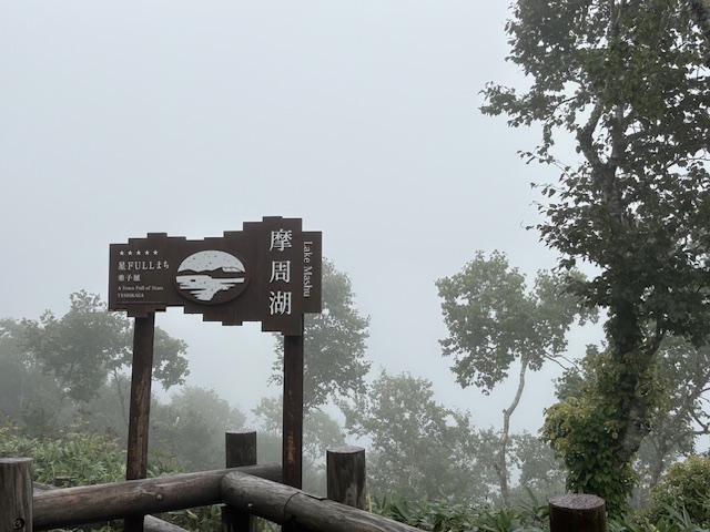 本題のピリカ号、最初は摩周湖へ。摩周湖は標高の高いところにあって霧の発生率がとても高く「霧の摩周湖」と言われてます。この日もやっぱり霧で何も見えず。残念!