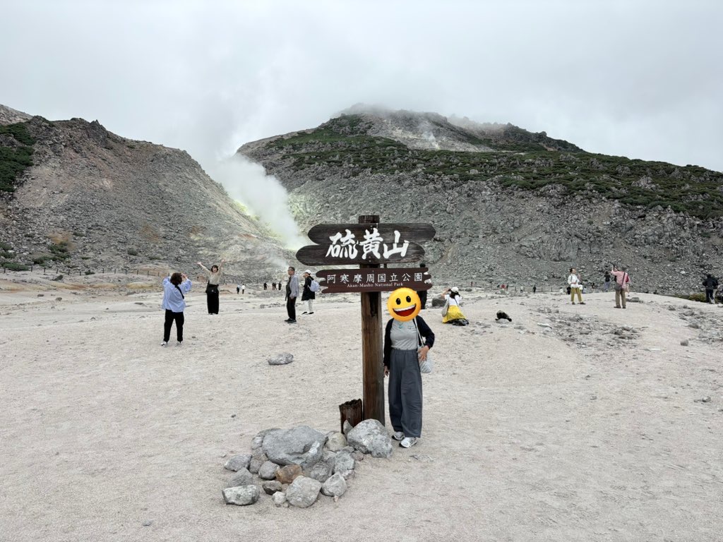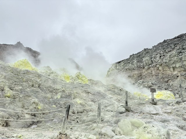 次は硫黄山。活火山で山の中には入れません。名前のとおり硫黄のにおいがすごかったです。