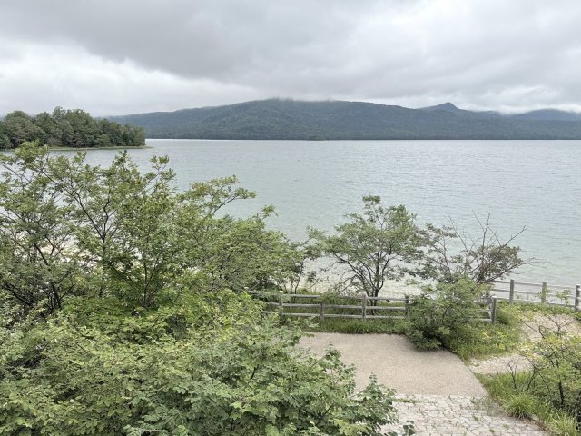 ボッケを過ぎて少し歩くと阿寒湖畔に出ました。歩いた甲斐があってここからの景色は素晴らしい!